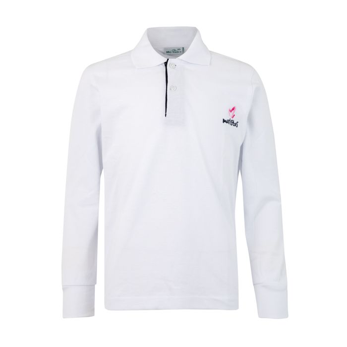 - Polo colegial de manga larga, realizado en piqué con cuello de canalé, puños de elástico